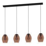 Závěsné svítidlo ESTANYS 1 je vyrobeno s hnědě průhledným skleněným stínidlem, které je zavěšeno na černém kovovém přístřešku s černým textilním kabelem. Závěsné svítidlo v moderním designu nabízí útulné osvětlení obývacího pokoje nebo jídelny nad jídelním stolem. Vyobrazená žárovka není součástí dodávky. Lampa je vhodná pro jakoukoli žárovku s paticí E27.